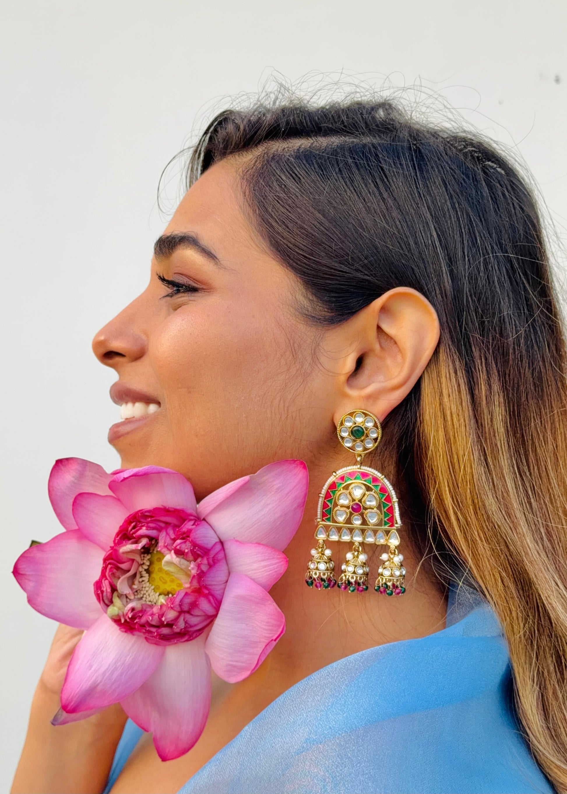The Sehaj Earrings are made for the woman who moves with purpose yet never loses her softness — balanced, elegant, and deeply rooted in her truth.