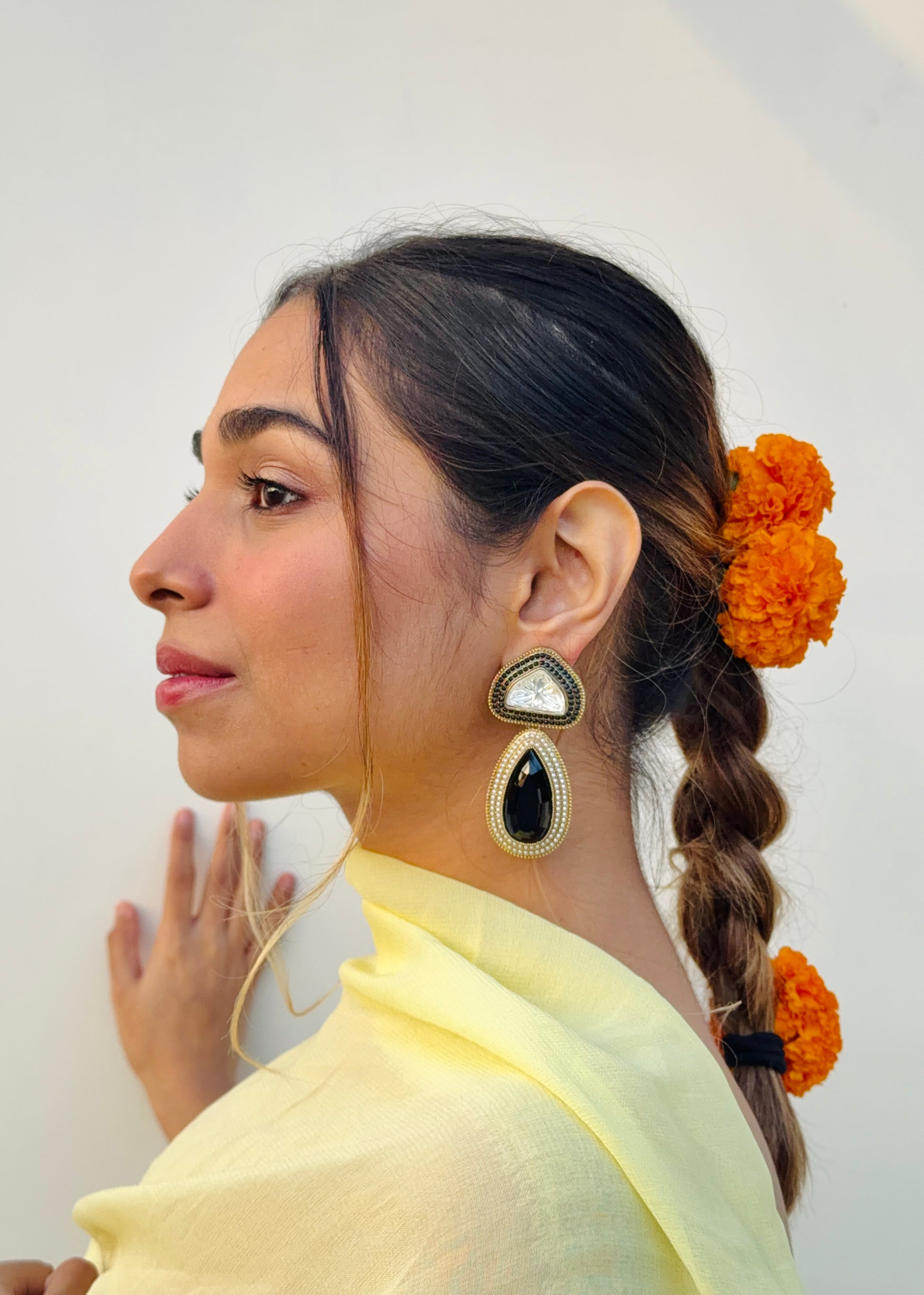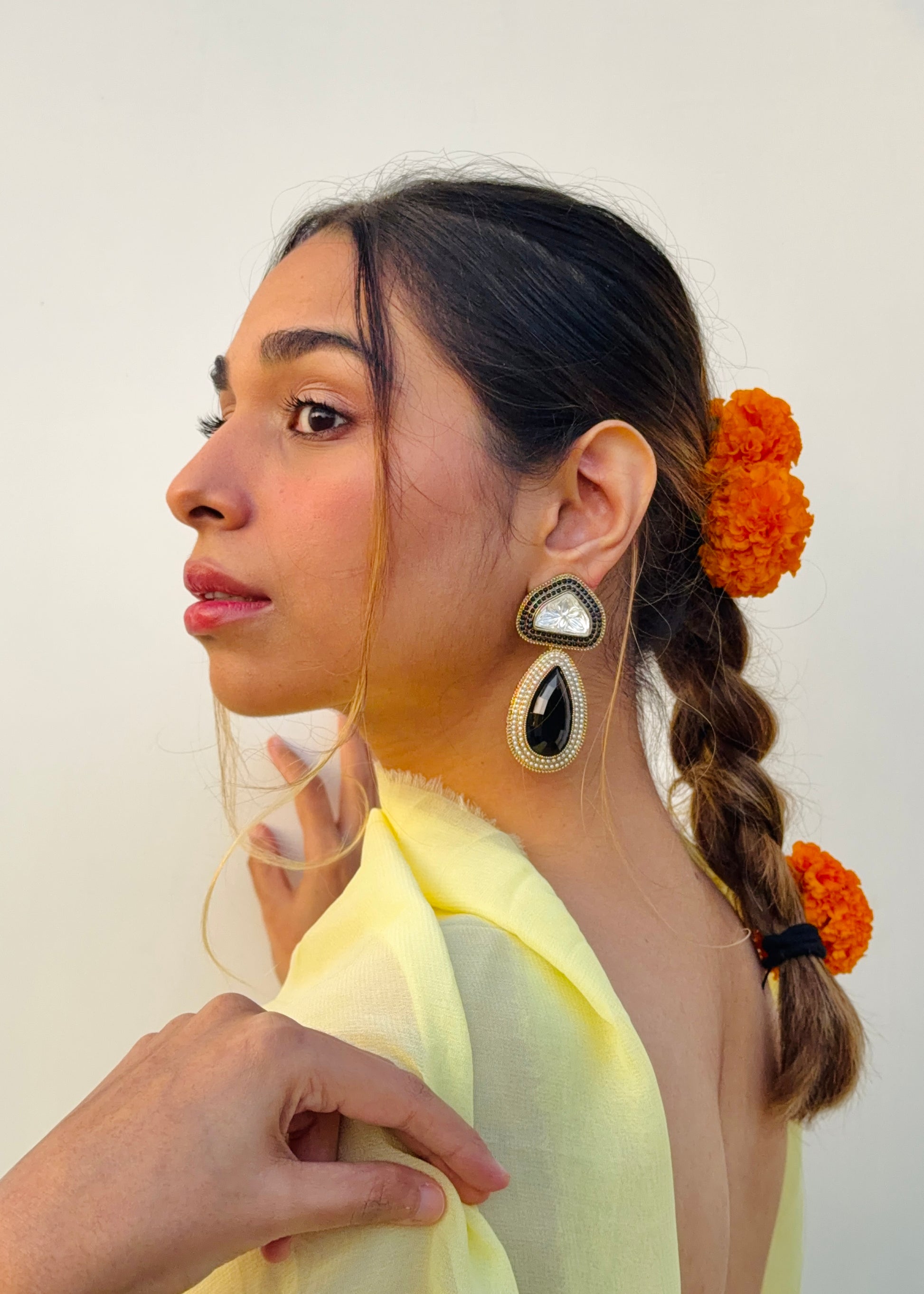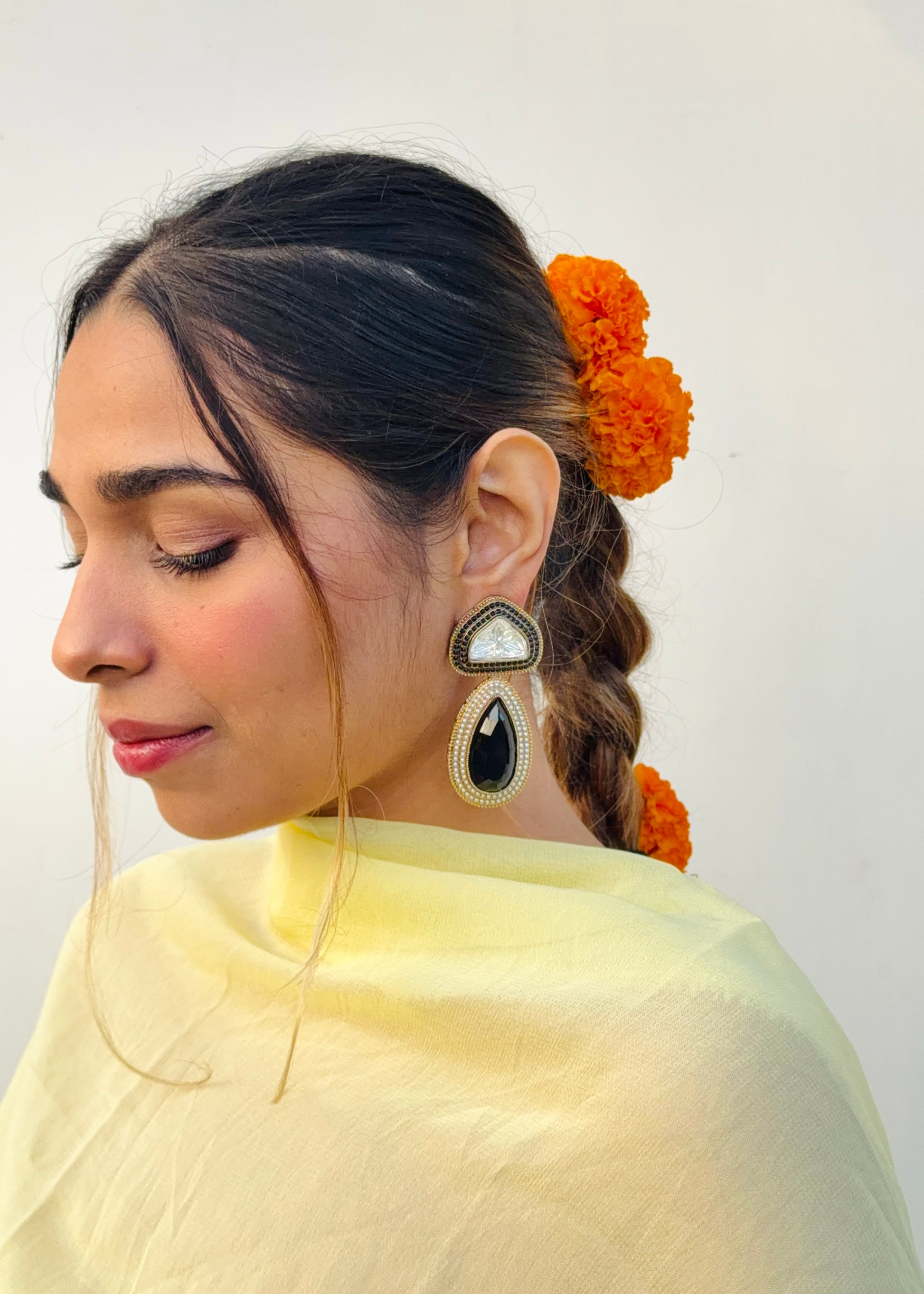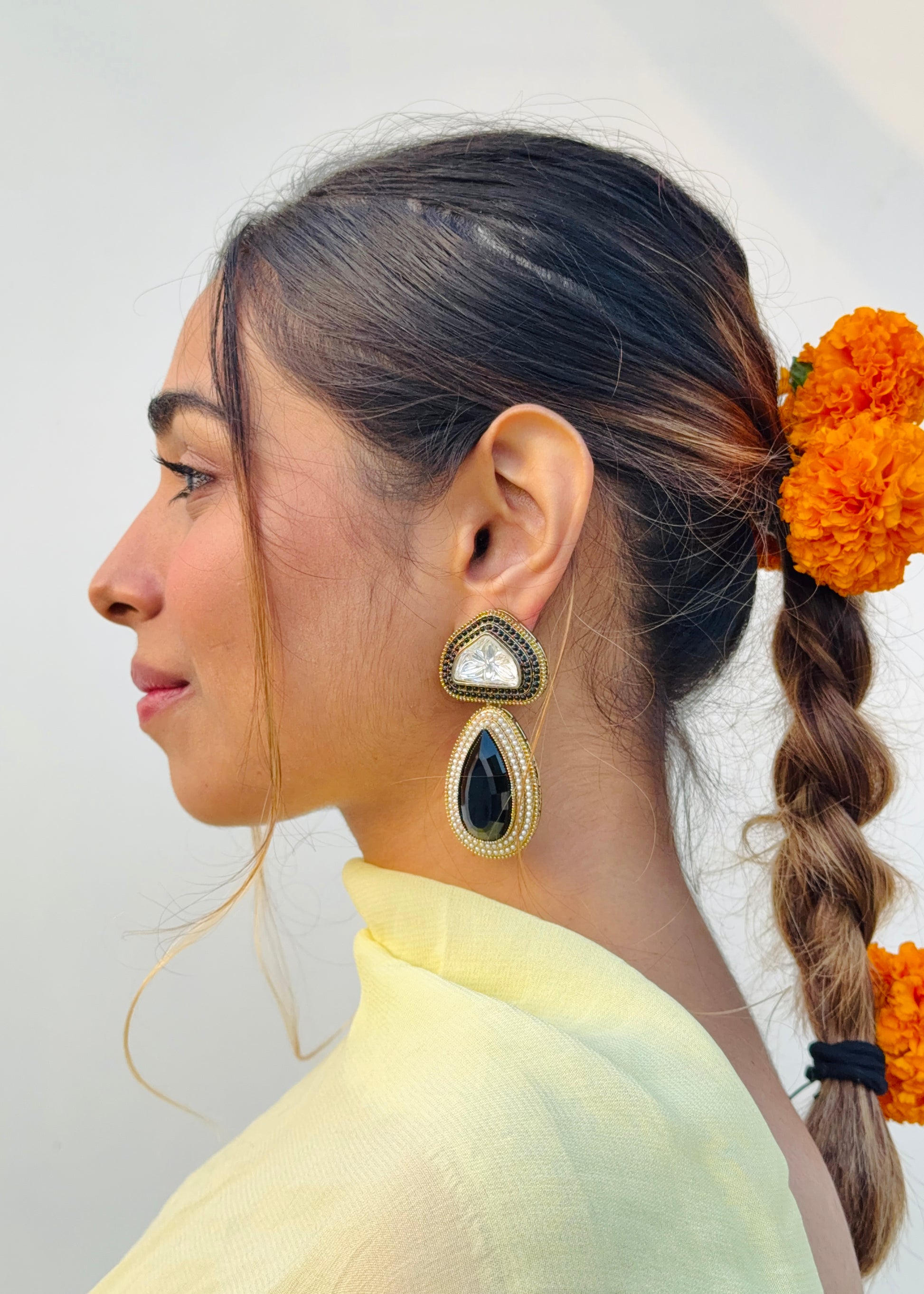 Handcrafted with fine detailing and a touch of timeless shimmer, the Tejini Earrings are designed to mirror your inner light — bold, confident, and effortlessly radiant.