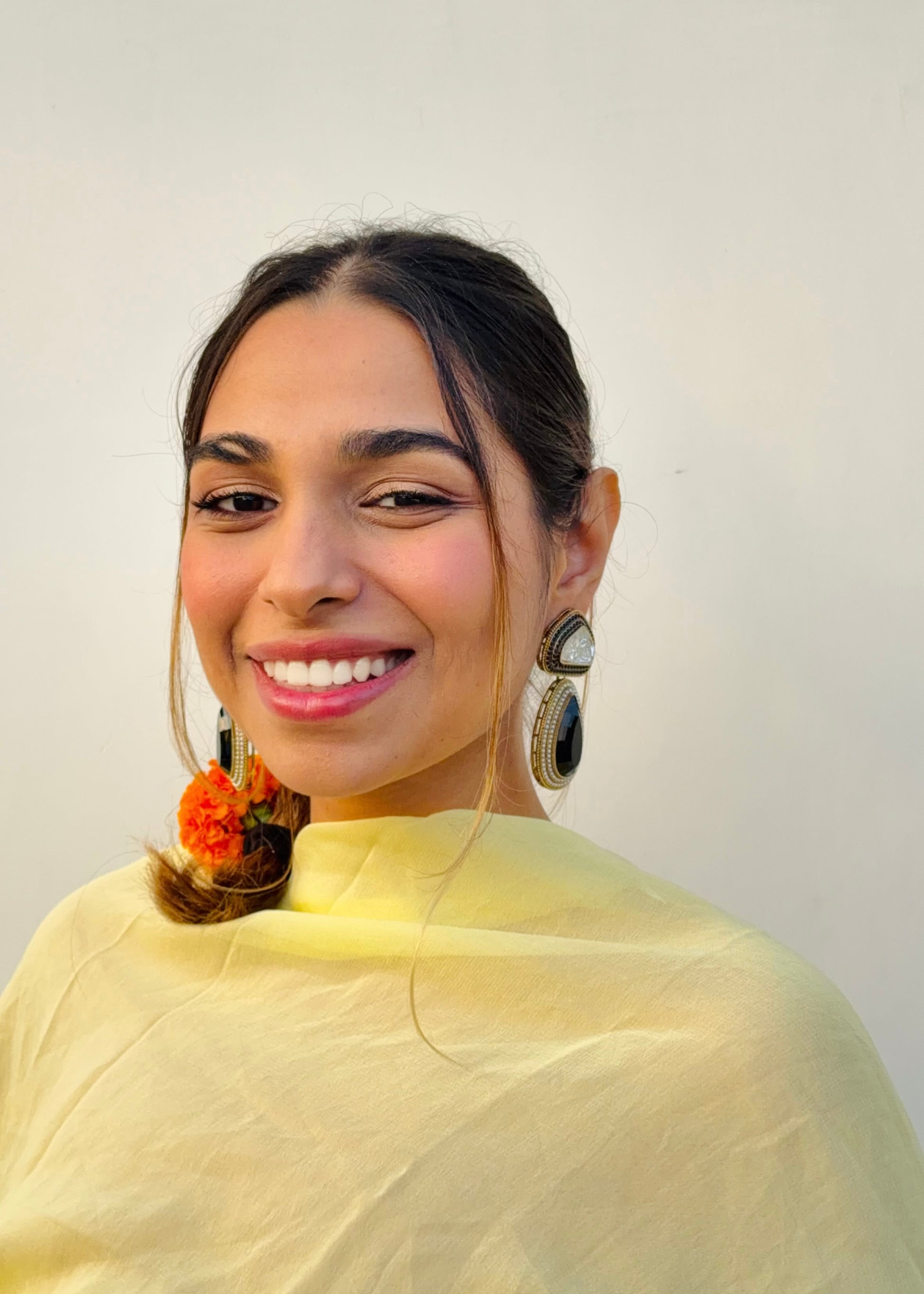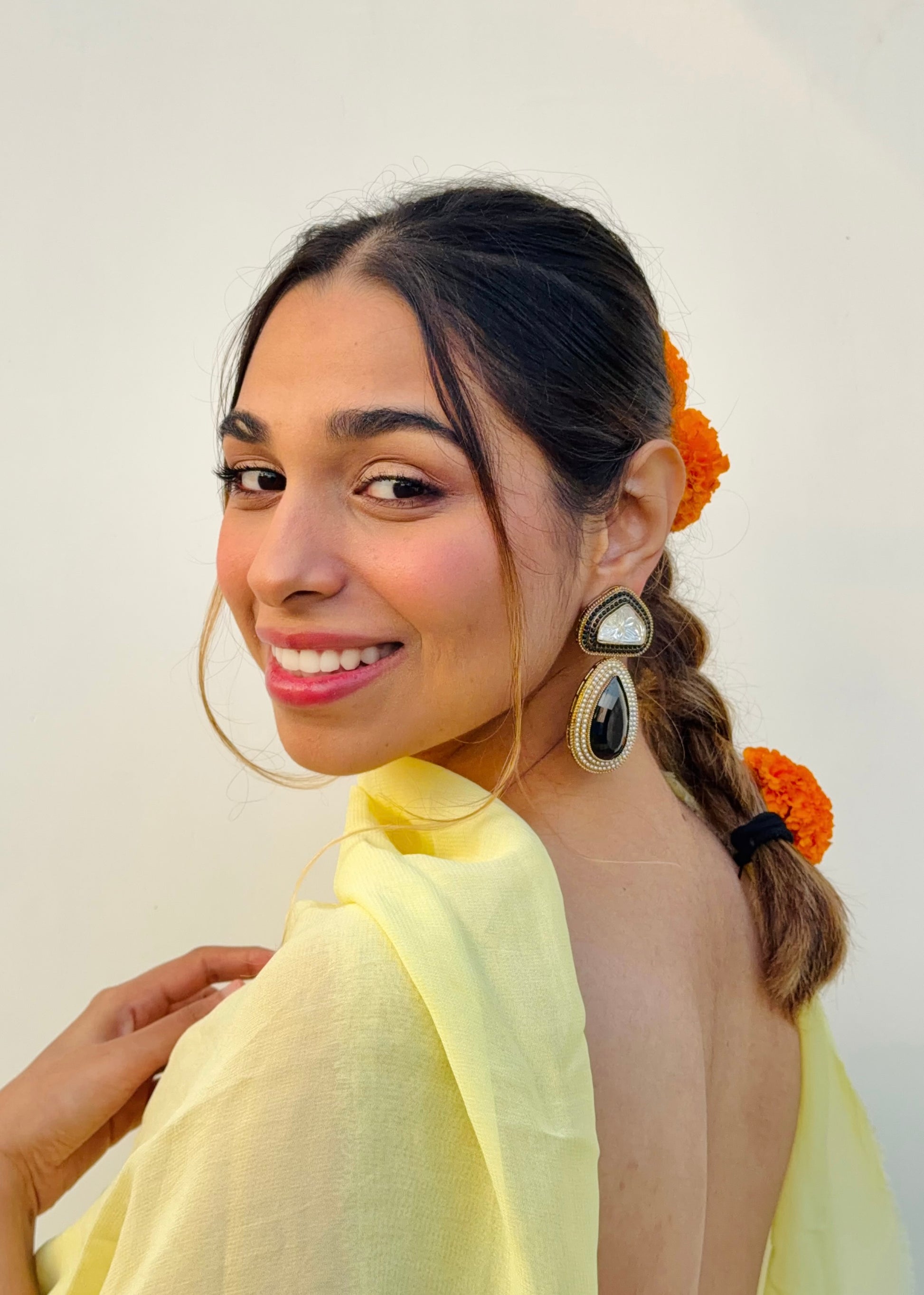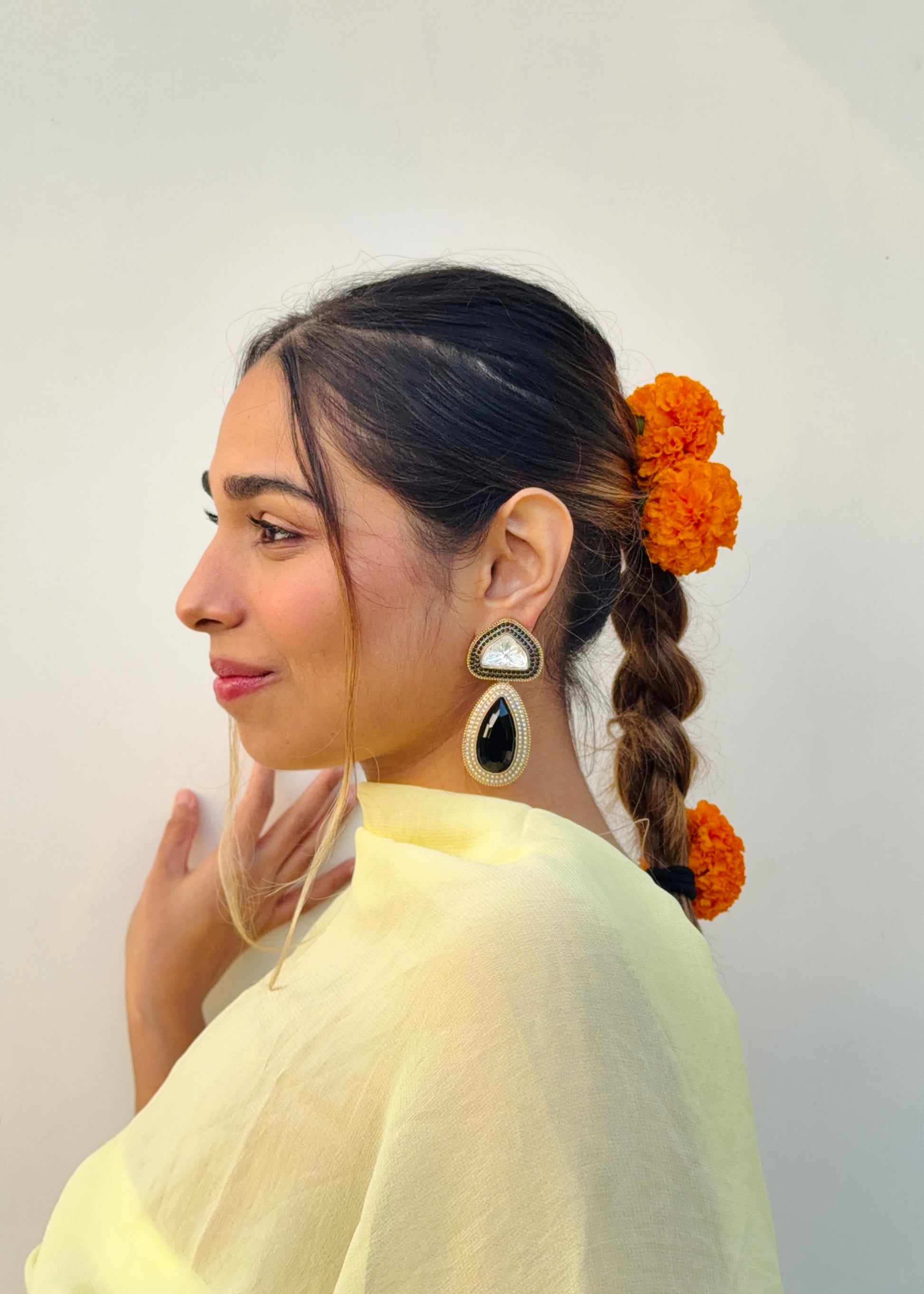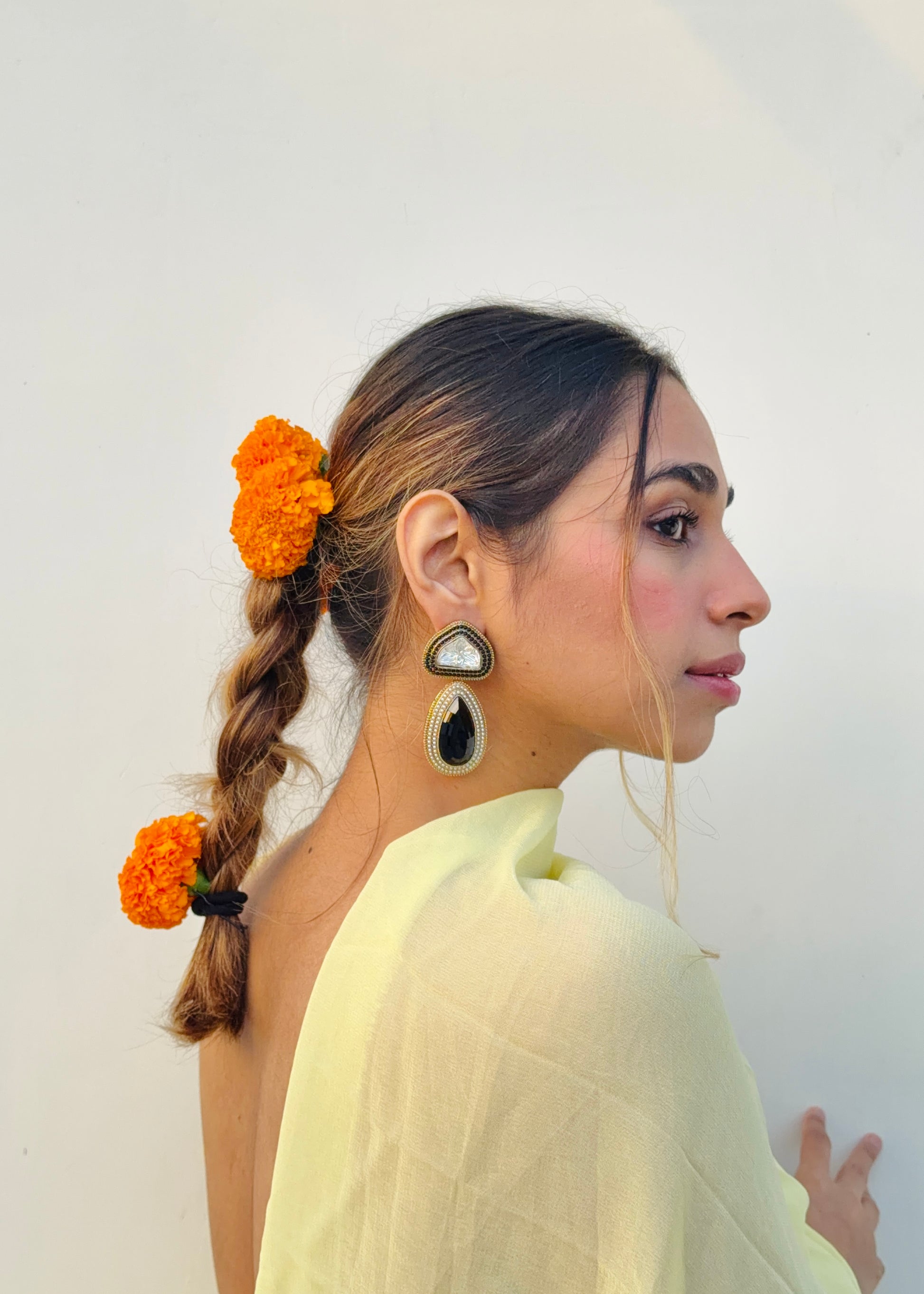Handcrafted with fine detailing and a touch of timeless shimmer, the Tejini Earrings are designed to mirror your inner light — bold, confident, and effortlessly radiant.